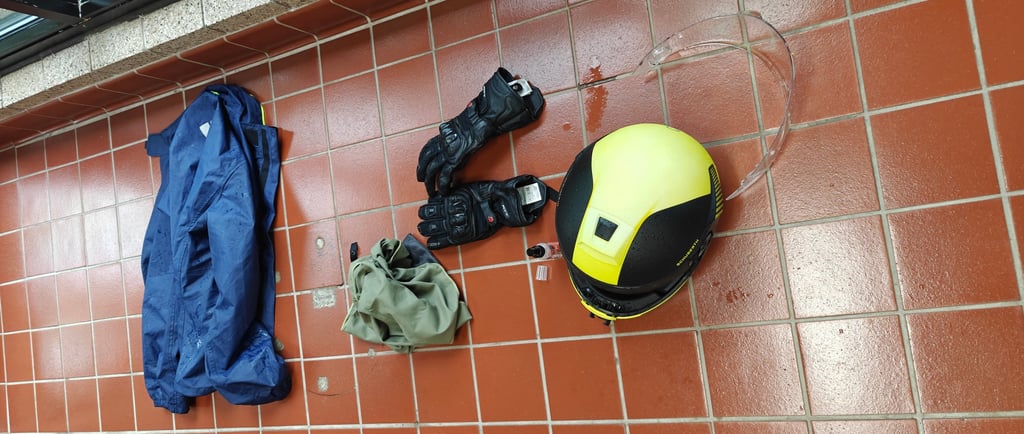 Riding in such conditions necessitated several strategic preparations. Ensuring the motorcycle tires were properly inflated and had sufficient tread was crucial for traction on the wet roads. Regular breaks were taken to rest and check the gear, confirming that everything remained dry and functional. Despite the challenges, the rain added an element of ruggedness to the journey, transforming a simple ride into a test of endurance and determination.